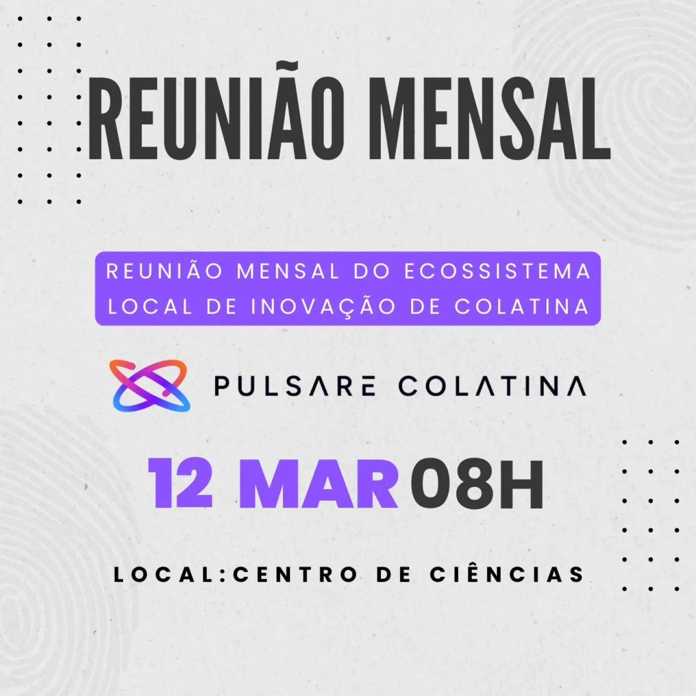 Passando para reforçar e incentivar a participação de todos na nossa reunião do PULSARE – Ecossistema de Inovação de Colatina, que acontecerá amanhã, dia 12, às 8h, no Centro de Ciências.
