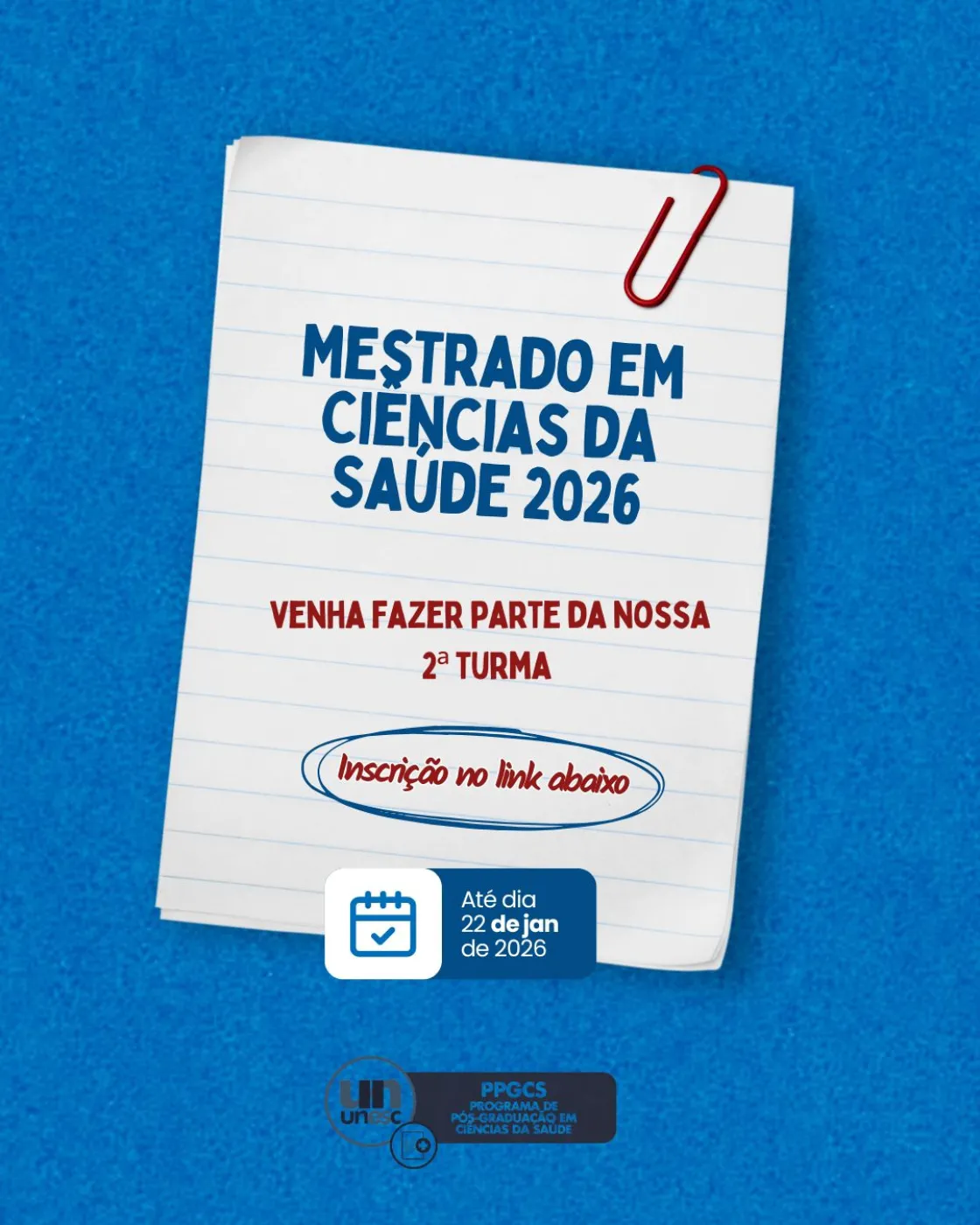 🎓 A 2ª turma do Mestrado em Ciências da Saúde do UNESC já está com inscrições abertas!