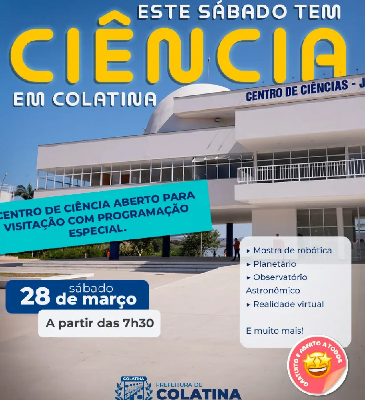Sábado (28/03), o Centro de Ciência de Colatina abriu suas portas para o público em um cronograma especial repleto de experiências interativas. Durante o evento, os visitantes puderam explorar uma programação diversificada, com destaque para as