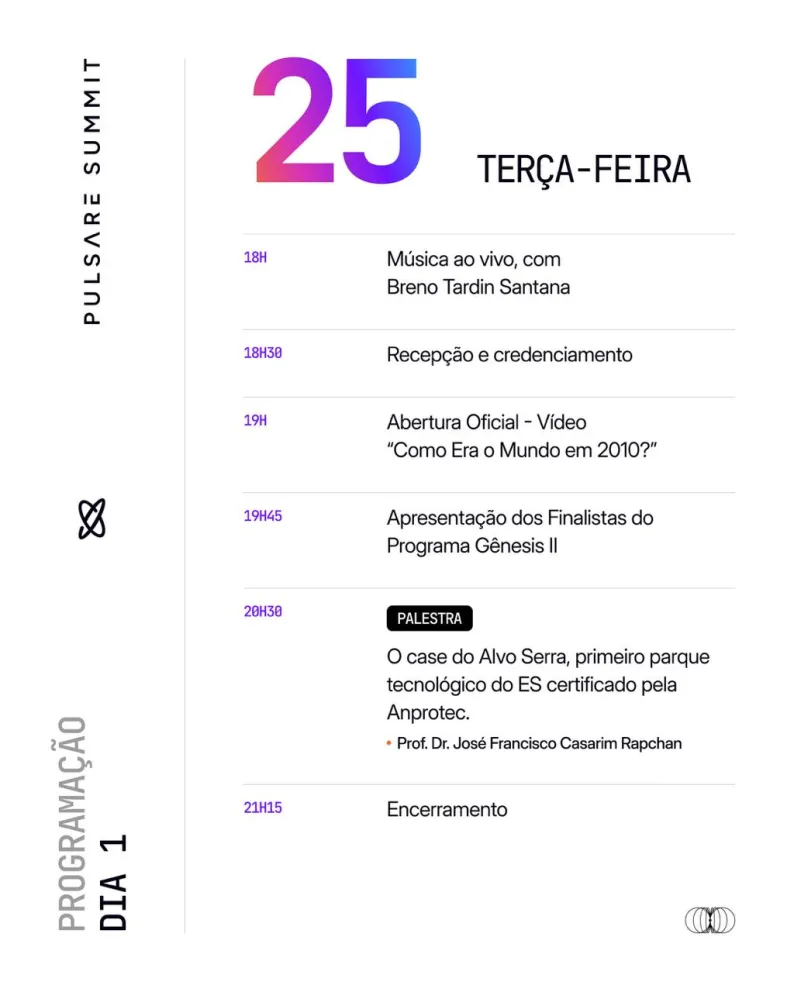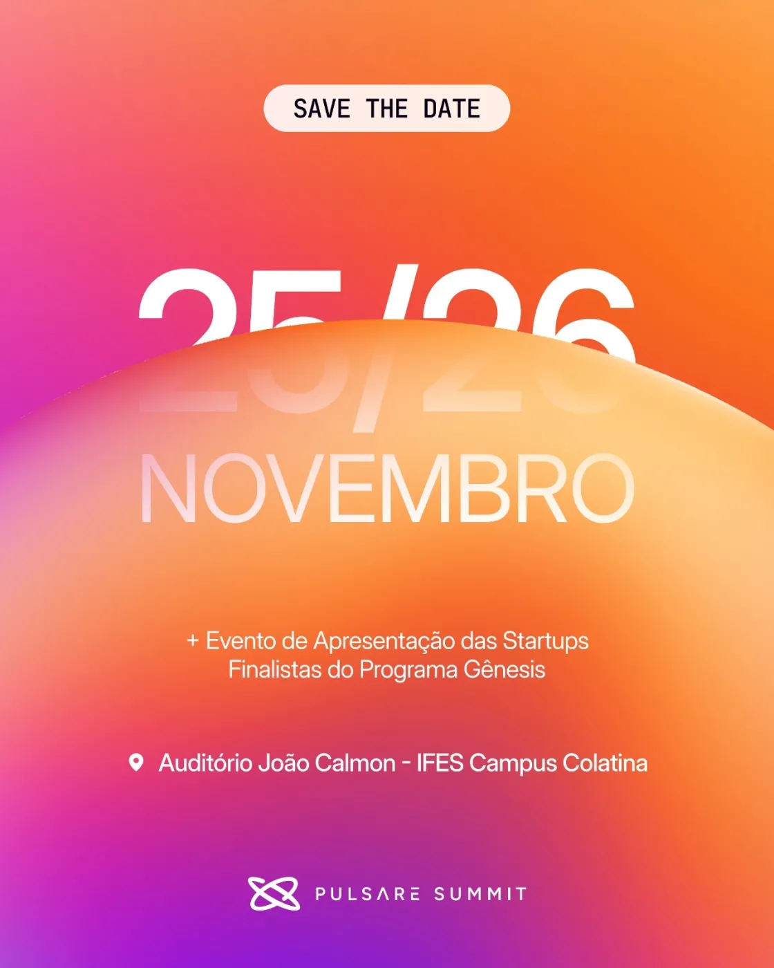 Nos dias 25 e 26 de novembro, o Ifes Campus Colatina recebe a 15ª edição do Pulsare Summit, evento que celebra a trajetória e o fortalecimento do Ecossistema Local de Inovação.